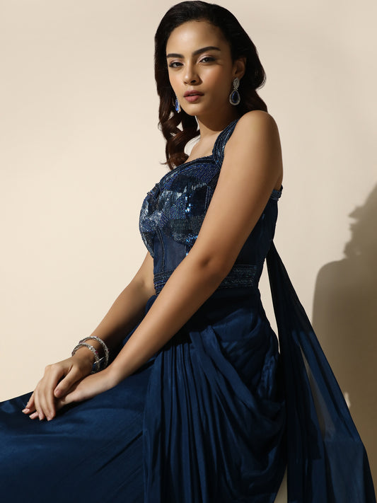 Midnight Blue Crossbody Halter Drape EnsembleRegular price Rs. 13,500.00Regular priceUnit price / per-