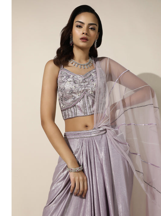 Lilac Shimmer Drape Saree with Corset Blouse and Sheer Shoulder DrapeRegular price Rs. 9,900.00Regular priceUnit price / per-