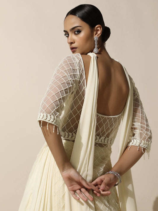 Beige Chiffon Saree with Floral Embroidery - PreDrapedRegular price Rs. 10,500.00Regular priceUnit price / per-