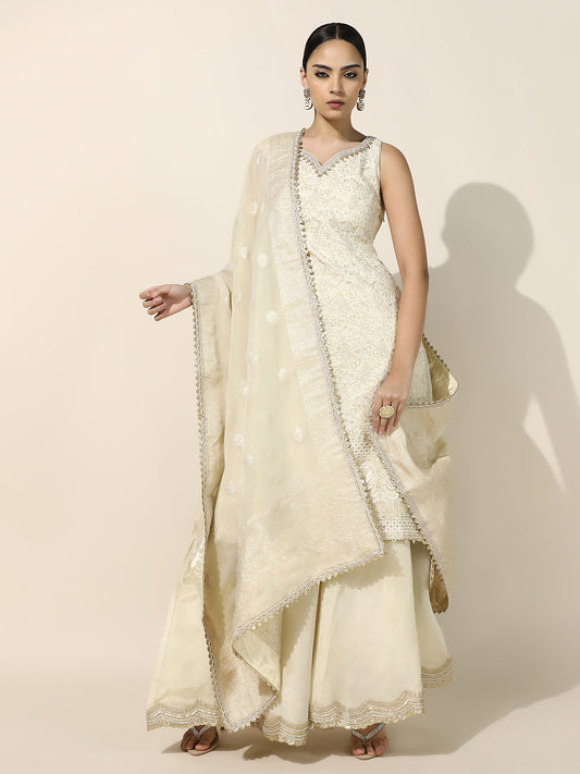 Ivory Chikankari Sharara Set with Brocade Silk Dupatta and Gold EmbroideryRegular price Rs. 7,200.00Regular priceUnit price / per-