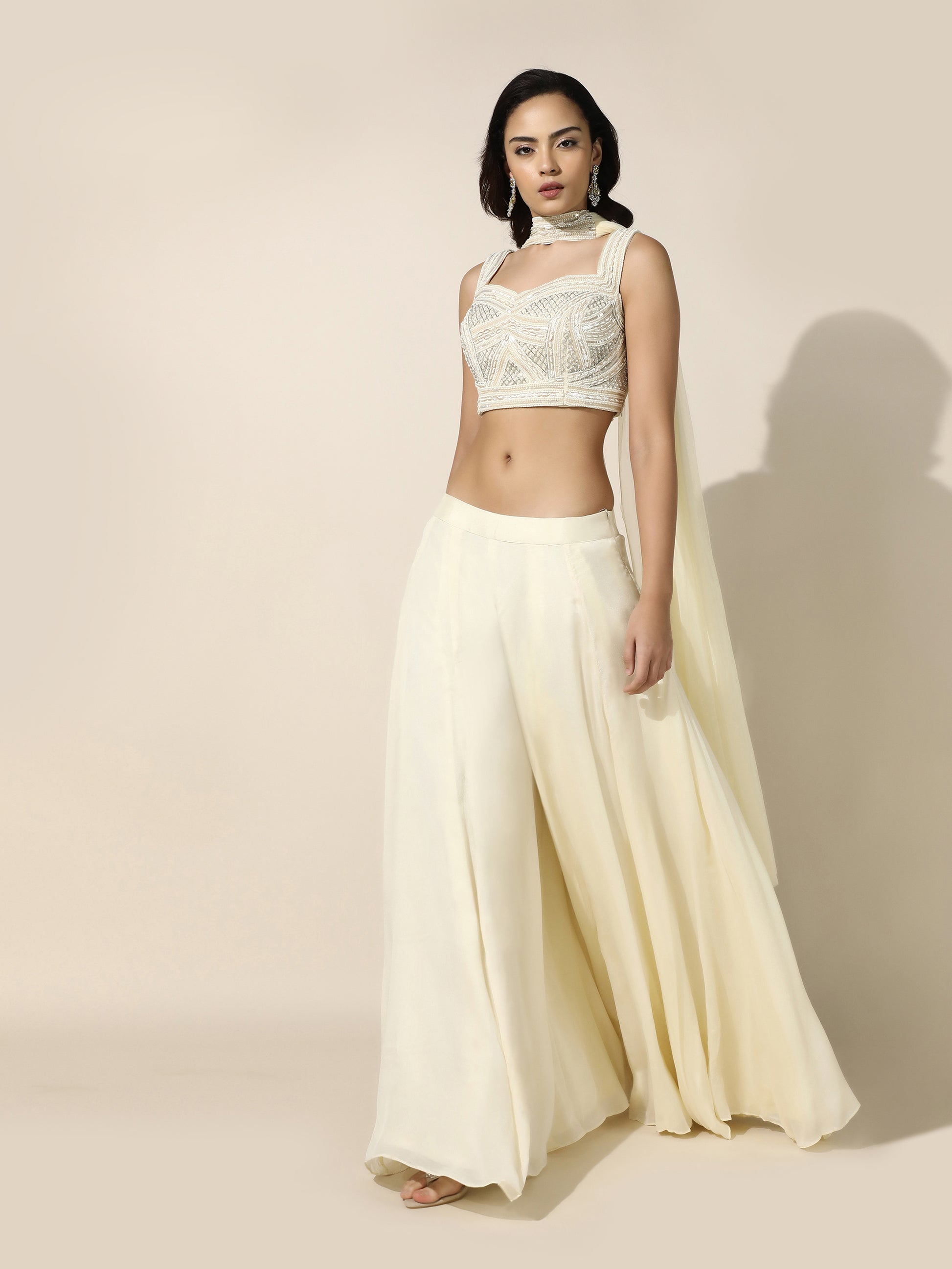 Ivory Pearl Work Cord-Set with Flared Pant and Choker Dupatta