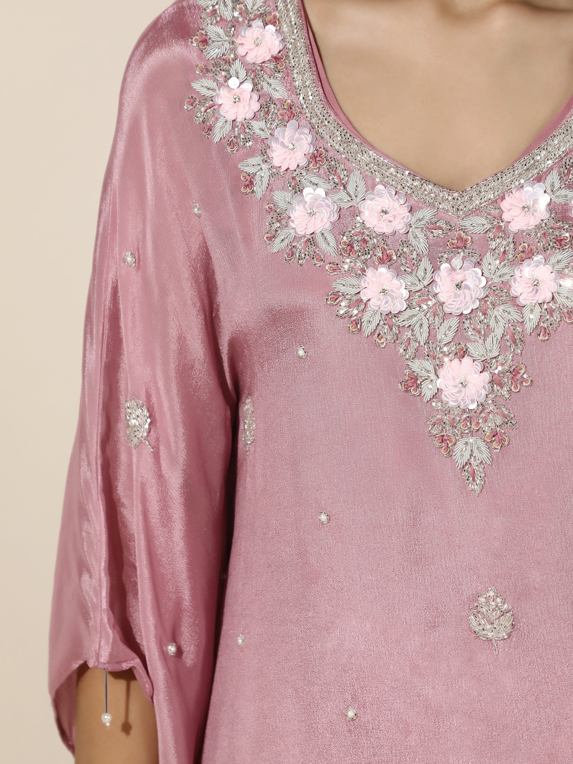 Rose Pink Floral Kaftan Set with Straight Bottom